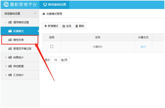 收費(fèi)模式設(shè)置完成之后進(jìn)到箱子列表(步驟參考“第三步:應(yīng)用收費(fèi)模式”),