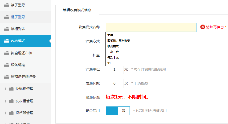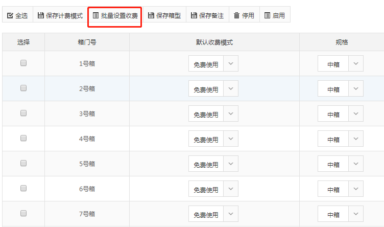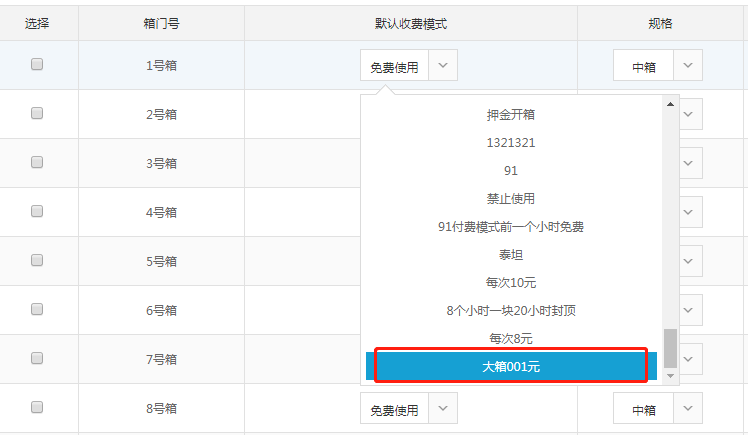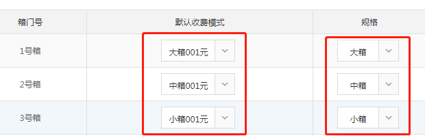 3. 可以看到當(dāng)前箱門信息,也可以設(shè)置默認(rèn)收費(fèi)模式、規(guī)格等功能