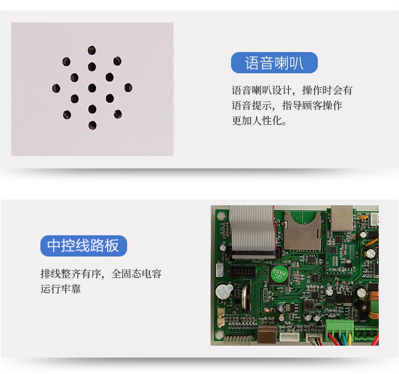 2.語音喇叭:人性化設(shè)計,語音喇叭;操作時會有語音提示,指導(dǎo)顧客操作,人機交互性強